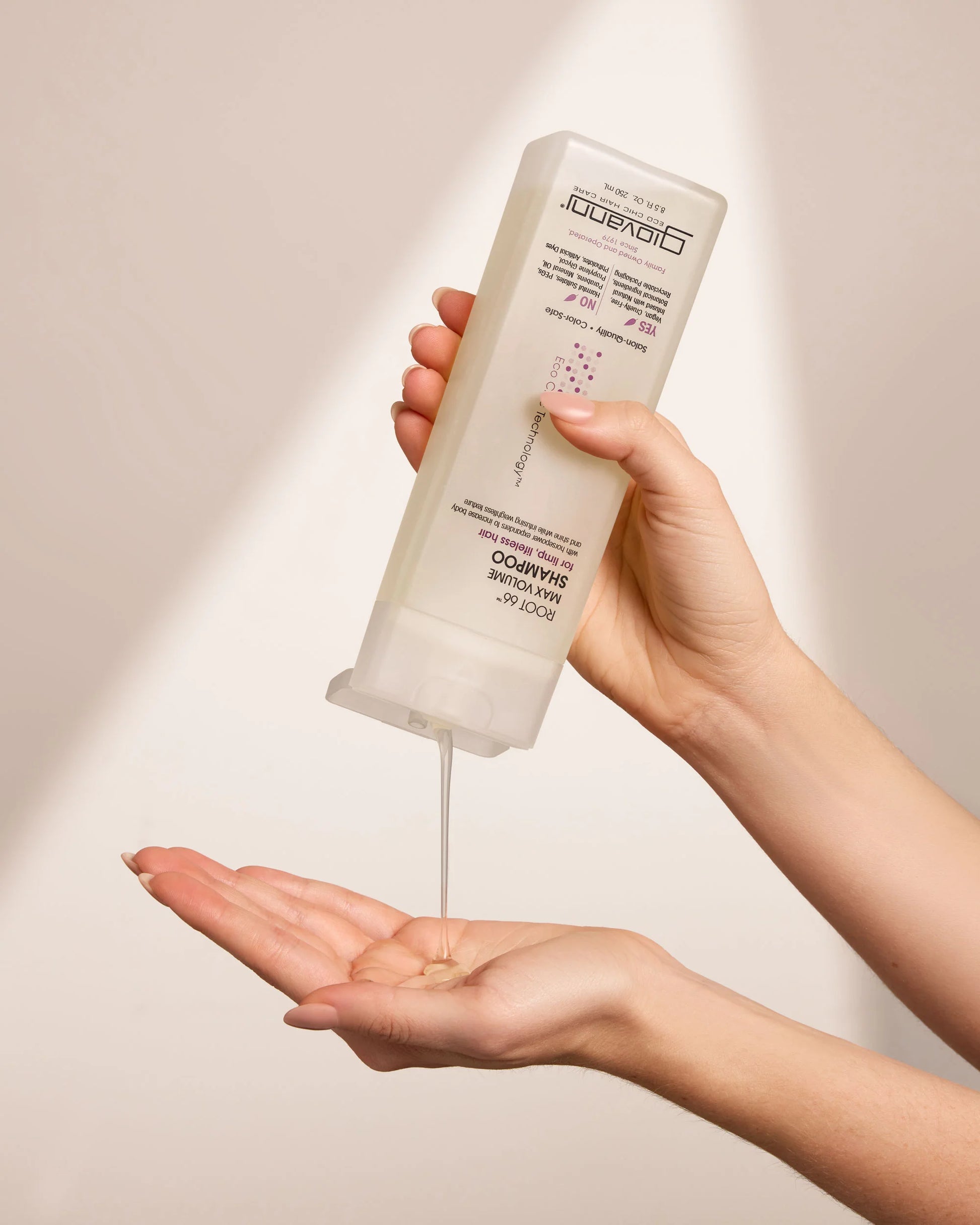 Lather this sulfate-free volumizing shampoo into wet hair. Rinse. Repeat for maximum volume. Follow with ROOT 66™ Max Volume Conditioner